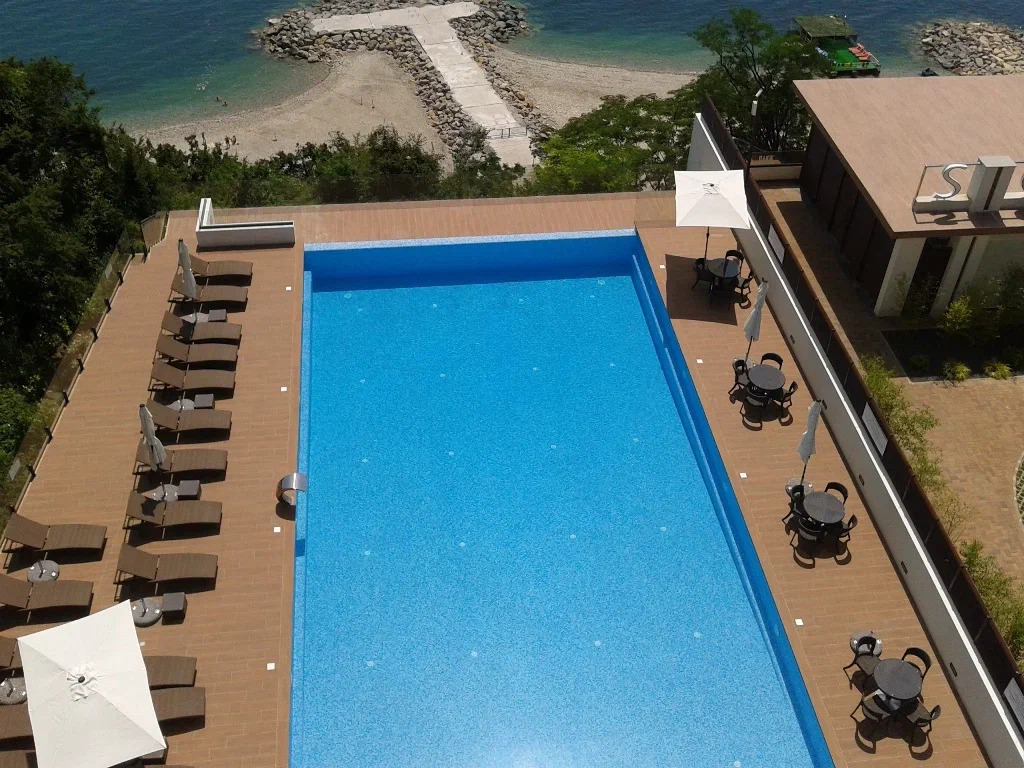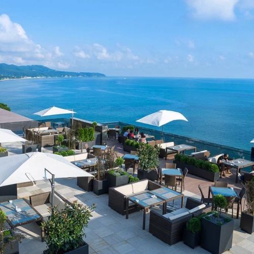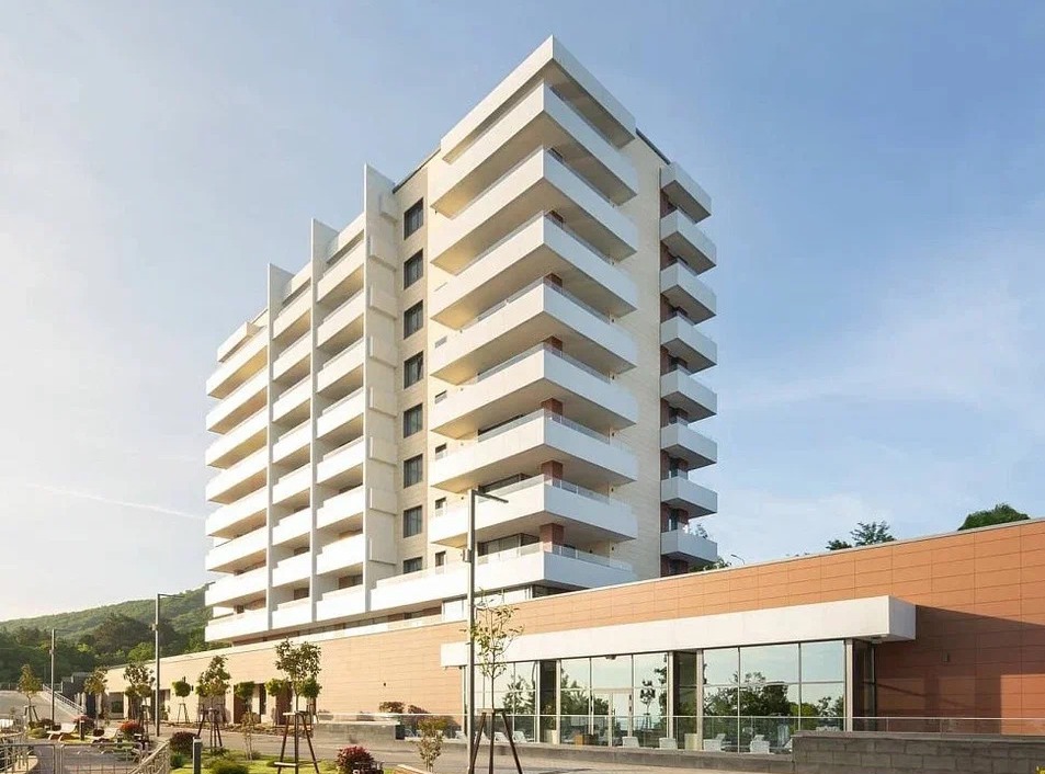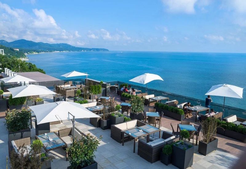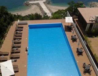 Собственный галечный пляж расположен в 200 метрах, он оборудован всем необходимым для комфортного отдыха. На пляже есть Bubble-бар с коктейлями и европейским меню, а также детская площадка. Спуститься к морю можно на автоматическом фуникулере или лестнице.